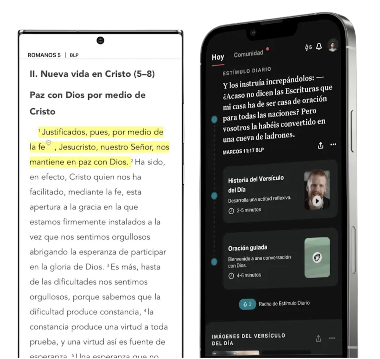 Lleva contigo la Palabra de Dios a donde vayas al descargar la aplicación gratuita de la Biblia. Escucha Audio Biblias, crea oraciones, estudia con amigos y mucho más, todo gratis. Click here for English.